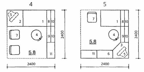 Рис. 4.25. Рабочее место сотрудника, ведущего прием посетителей. Варианты 4, 5. Экспликация.