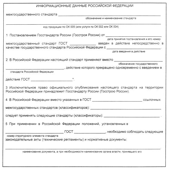 (рекомендуемое) Форма изложения информационных данных Российской Федерации межгосударственного стандарта