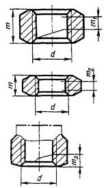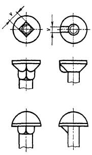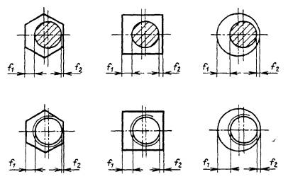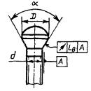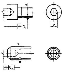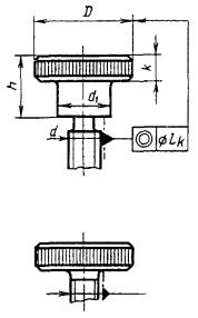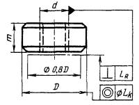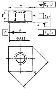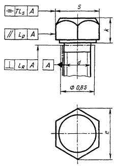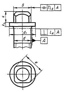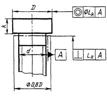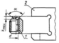 Примечания: 1. База - только гладкая или только резьбовая поверхность стержня. Длина базы равна d. Допускается длину базы на гладкой части стержня уменьшать до трех шагов резьбы (3Р), если длина гладкой части меньше d. 2. Для болтов и винтов с фланцами (буртиками), а также для изделий, у которых шестигранная головка образуется холодной штамповкой без применения операции обсечки, диаметр описанной окружности e ³ 1,12Smin. 3. При выполнении резьбы накатыванием без редуцирования предельные отклонения диаметра гладкой части стержня - по ГОСТ 19256. 4. Допуски на размеры концов установочных винтов указаны в ГОСТ 12414. (Измененная редакция, Изм. № 1). При определении допусков перпендикулярности и параллельности поверхностей в формулы табл. 2 подставляют номинальные значения соответствующих размеров и полученные величины допусков округляют до второго знака после запятой. Примечание. Числовые значения допусков и предельных отклонений, соответствующие обозначениям допусков и полей допусков в тексте и в табл. 2 стандарта, приведены в справочном приложении. 2.2. Неуказанные предельные отклонения размеров - по ГОСТ 25670: класс точности «средний» - для изделий класса точности А и В; класс точности «очень грубый» - для изделий класса точности С. (Измененная редакция, Изм. № 1). 2.3. Неуказанные допуски и формы расположения поверхности - по ГОСТ 25069. (Введен дополнительно, Изм. № 1). 3. МЕТОДЫ КОНТРОЛЯ3.1. Размеры и расположение поверхностей изделий должны контролироваться универсальными измерительными инструментами, предельными калибрами, шаблонами, контрольными матрицами и другими средствами, аттестованными совместно с методиками измерения в порядке, установленном ГОСТ 8.010*. _________ * На территории Российской Федерации действует ГОСТ Р 8.563-96. При контроле размеров изделий допуски и предельные отклонения, заданные с точностью до 0,001 мм, должны округляться до 0,01 мм. Размеры, не ограниченные предельными отклонениями, не контролируются. Выполнение их должно гарантироваться технологическим процессом изготовления. 3.2. Размеры резьбы должны проверяться предельными калибрами по ГОСТ 24997. Допускается навинчивание (ввинчивание) калибра НЕ до прохождения; отверстия под шплинт на стержневых изделиях; концевых витков неполного профиля; прорезей в прорезных и корончатых гайках. Допускается навинчивание (ввинчивание) калибра ПР динамометрическим ключом с моментом, равным 0,06d в Н×м. 3.3. Размер под ключ и диаметр описанной окружности шестигранника и квадрата, а также диаметра цилиндрической головки винта контролируют в средней (по высоте) части гайки или головки изделия на участке, равном половине их высоты. 3.2; 3.3. (Измененная редакция, Изм. № 1). 3.4. Высота потайной головки измеряется при помощи приспособления, показанного на черт. 1. При этом размеры скобы и втулки должны соответствовать крепежному изделию с номинальным размером d, углом а и максимальным размером k. Диаметр отверстия контрольной втулки должен приниматься по 2-му ряду ГОСТ 11284. Допускаются другие методы контроля. (Измененная редакция, Изм. № 1). 3.5. Глубина и ширина прямого шлица в изделиях должны измеряться по оси стержня, при этом ширина шлица определяется у его основания. 3.6. Проверка крестообразных шлицев - по ГОСТ 10753. 3.7. Длина болта, винта, шпильки при косом срезе торца стержня должна проверяться по длинной стор