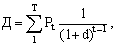 где: Т - суммарная продолжительность жизненного цикла проекта, включая строительство объекта и эксплуатацию; Рt - ежегодная разность поступлений и выплат в бюджет; t - годы реализации; d - коэффициент дисконтирования. Коэффициент дисконтирования (d) без учета риска проекта определяется как отношение ставки рефинансирования (r), установленной Центральным банком Российской Федерации на текущий год и темпа инфляции (i).