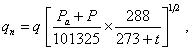 4.3.2 Проведение испытания Устройство контроля пламени должно находиться в открытом положении при постоянном давлении на входном соединении; расход воздуха регулируют так, чтобы перепад давления был 0,1 кПа. Для приведения измеренного расхода воздуха к стандартным условиям приведенный расход воздуха qn, м3/ч, рассчитывают по формуле
