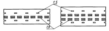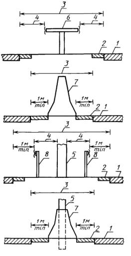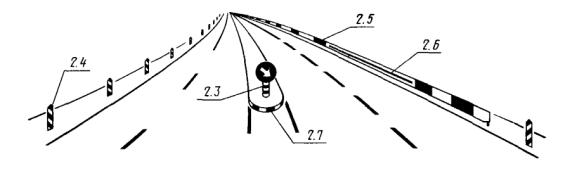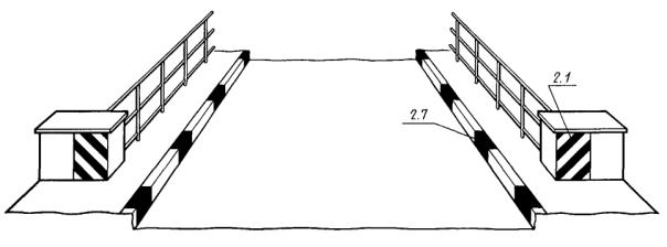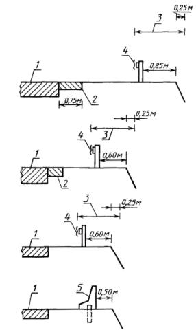 Черт. 15 Черт. 16 Черт. 17 Черт. 18 Черт. 19 Черт. 20 1 - проезжая часть; 2 - краевая укрепительная полоса; 3 - ширина разделительной полосы; 4 - расчетный поперечный прогиб ограждения; 5 - препятствие; 6 - барьерное двустороннее металлическое ограждение; 7 - двустороннее железобетонное ограждение парапетного типа; 8 - барьерное одностороннее металлическое ограждение Черт. 21 1 - приезжая часть; 2 - краевая укрепительная полоса; 3 - расчетный поперечный прогиб ограждения; 4 - барьерное одностороннее металлическое ограждение; 5 - парапетное одностороннее ограждение Черт. 22 1 - проезжая часть; 2 - краевая укрепительная полоса; 3 - расчетный поперечный прогиб ограждения; 4 - препятствие Черт. 23 Черт. 24 Черт. 25 ПРИЛОЖЕНИЕ 1