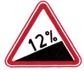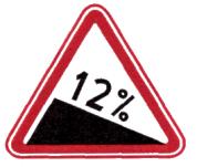Примечания: 1. Для строящихся дорог должна приниматься скорость, соответствующая 70 % расчетной скорости, а для эксплуатируемых дорог - скорость, которую на данном участке не превышают 85 % транспортных средств. 2. Под расстоянием видимости подразумевается расстояние, на котором с высоты 1,2 м (уровень глаз водителя легкового автомобиля) можно увидеть предмет, находящийся на высоте 1,2 м над уровнем проезжей части. 2.2.15. Знаки 1.12.1 и 1.12.2 «Опасные повороты» должны устанавливаться перед двумя и более следующими друг за другом кривыми в плане, если перед первой из них в соответствии с требованиями п. 2.2.14 должен быть установлен соответственно знак 1.11.1 или 1.11.2 и расстояние между соседними кривыми менее 300 м. Расстояние между соседними кривыми в плане определяется между концом и началом следующих друг за другом кривых - круговых или переходных. При трех и более следующих друг за другом кривых в плане со знаками 1.12.1 и 1.12.2 следует применять табличку 7.2.1. 2.2.16. Знаки 1.13 «Крутой спуск» и 1.14 «Крутой подъем» должны устанавливаться соответственно перед спуском или подъемом, если длина участка дороги на уклоне при соответствующей величине уклона больше указанной в табл. 2. В случае, если спуски и подъемы следуют друг за другом, знаки 1.13 и 1.14 (без таблички 7.1.1) допускается устанавливать в непосредственной близости перед началом спуска или подъема. Таблица 2