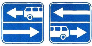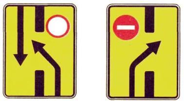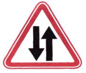 Если участок спуска или подъема не просматривается на всем его протяжении или его длина превышает 0,5 км, со знаками 1.13 или 1.14 следует применять табличку 7.2.1. 2.2.17. Знак 1.15 «Скользкая дорога» должен устанавливаться перед участками дорог, на которых коэффициент сцепления шин с покрытием во влажном состоянии менее 0,3. 2.2.18. Знак 1.16 «Неровная дорога» должен устанавливаться перед участками дорог, имеющими неплавные сопряжения на подходах к мостам и путепроводам и повреждения покрытия (выбоины, наплывы, волнистость и т.п.), если коэффициент безопасности на данном участке менее 0,6. 2.2.19. Знак 1.17 «Выброс гравия» должен устанавливаться перед участками дорог с усовершенствованным покрытием, на которых возможен выброс гравия, щебня и т.п. из-под колес транспортных средств. 2.2.20. Знаки 1.18.1 - 1.18.3 «Сужение дороги» должны устанавливаться вне населенных пунктов перед участками дорог, на которых ширина проезжей части уменьшается более чем на 0,5 м, а в населенных пунктах - перед участками дорог, на которых ширина проезжей части уменьшается на одну полосу или более. Вне населенных пунктов знак должен устанавливаться также перед мостами, путепроводами, эстакадами и тоннелями, если ширина проезжей части в пределах искусственного сооружения равна или меньше, чем на подходах к нему, а в населенных пунктах - если ширина проезжей части в пределах искусственного сооружения меньше, чем на подходах к нему. Знак 1.18.2 не должен устанавливаться в местах окончания полосы разгона и дополнительной полосы на подъеме. 2.2.21. Знак 1.19 «Двустороннее движение» должен устанавливаться перед участками дороги (проезжей части) с двусторонним движением, если им предшествует участок с односторонним движением. Знак 1.19 должен применяться независимо от применения знака 5.6. Знак 1.19 не должен применяться, если дорога, обозначенная знаком 5.5, заканчивается на Т-образном перекрестке, перекрестке с круговым движением или площади. 2.2.22. Знак 1.20 «Пешеходный переход» вне населенных пунктов должен устанавливаться перед всеми обозначенными знаками 5.16.1, 5.16.2 и (или) разметкой 1.14 нерегулируемыми пешеходными переходами, а в населенных пунктах - перед переходами, расстояние видимости которых менее 150 м. Знак 1.20 допускается не устанавливать перед пешеходными переходами, расположенными на перекрестках. 2.2.23. Знак 1.21 «Дети» должен устанавливаться перед участками дорог, на которые имеется выход с территорий детских учреждений (школ, оздоровительных лагерей и т.п.), прилегающих непосредственно к данной дороге. Знак 1.21 должен повторяться. Первый знак должен быть установлен на расстоянии 100 м, а второй - не менее 50 м от начала опасного участка. С повторным знаком должна применяться табличка 7.2.1, на которой указывается протяженность участка дороги, прилегающего непосредственно к территории детского учреждения. (Измененная редакция, Изм. № 1). 2.2.24. Знак 1.22 «Пересечение с велосипедной дорожкой» должен устанавливаться перед пересечениями велосипедной дорожки, обозначенной знаком 4.5, с дорогой, если они расположены вне перекрестков. 2.2.25. Знак 1.23 «Дорожные работы» должен устанавливаться перед местами проведения любых видов работ на проезжей части, обочинах или разделительной полосе дороги, а также на тротуаре, если пешеходы вынуждены при этом выходить на проезжую часть. В стесненных условиях, а также в 