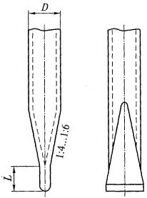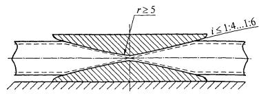 При искривлениях проката из низкоуглеродистых сталей по ГОСТ 380 и ГОСТ 1050 и низколегированных сталей по ГОСТ 19281, превышающих величины, указанные в табл. 4, правка допускается только в горячем состоянии при общем или местном нагреве металла до температуры не ниже 1100 °С с окончанием правки при температуре не ниже 700 °С. Охлаждать металл после правки можно на воздухе при температуре не ниже 0 °С. Температурный режим правки металла, обеспечивающий сохранение его свойств согласно требованиям соответствующих государственных стандартов, определяется технологической документацией, разработанной предприятием - изготовителем машин. Правку на прессах термически упроченных труб следует производить в холодном состоянии. Горячекатаные и нормализованные трубы допускается править с помощью газовой горелки путем местного нагрева по технологической документации, разработанной предприятием - изготовителем машин. 3.1.3. Правку проката путем наплавки валиков дуговой сваркой производить запрещается. 3.1.4. Резка заготовок деталей должна производиться на ножницах, пилах трения, зубчатых пилах, а также автоматами и полуавтоматами для кислородной резки другими механизированными способами термической и механической резки, обеспечивающими необходимое качество поверхности реза. При невозможности применения механизированных способов кислородной резки как исключение разрешается применять ручную кислородную или воздушно-дуговую и кислородно-дуговую резку. 3.1.5. Кромки заготовок деталей после кислородной или дуговой (воздушной и кислородной) резки должны быть очищены от грата, шлака, брызг и наплывов металла и не иметь зарезов, в целом занимающих более 20 % общей длины кромки. Длина одного зареза допускается не более 150 мм, глубина - не более 2 мм. Непрямолинейность реза более 1 мм и наплывы должны быть удалены и зачищены. После дуговой (воздушной и кислородной) резки кромки деталей перед сваркой должны быть обработаны на глубину 1,5 - 2 мм от наибольшей впадины реза. 3.1.6. Кромки заготовок деталей, отрезанные ножницами, не должны иметь заусенцев и завалов, превышающих 1 мм, а также трещин и расслоений. 3.1.7. Кромки заготовок деталей из углеродистых и низколегированных сталей, не подлежащих сварке, в расчетных элементах, работающих на растяжение, а также в деталях, расположенных по направлению усилия в растянутой зоне изгибаемых элементов, после кислородной и дуговой резки (воздушной и кислородной) и после резки на ножницах должны быть подвергнуты механической обработке (строжке, фрезеровке и т.п.). Необходимость механической обработки кромок деталей должна указываться в чертежах или в технологической документации. После машинной кислородной резки при высоте неровностей реза, меньшей или равной 0,3 мм, обработку кромок допускается не производить. 3.1.8. Обработка деталей из труб методом давления (гибка, сплющивание, вальцовка концов, высадка и др.) должна исключать коробление, появление трещин и надрывов. Места обработки не должны закаливаться. При гибке труб допускается овальность в местах гиба до 15 % наружного диаметра. 3.1.9. Сплющивание концов труб следует производить в горячем состоянии призматическими матрицами трапецеидального сечения с уклоном боковых граней около 1:4…1:6 (рис. 1) и радиусом сопряжения рабочих плоскостей не менее 5 мм. Нагрев труб пр