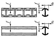 3.1.15. Гибку листового проката из низколегированной стали в холодном состоянии разрешается производить, если радиус изгиба (R) не менее: При толщине листа S до 6,0 мм вкл. 1,6S мм То же свыше 6,0 до 12,0 мм вкл. 2,0S мм » свыше 12,0 до 20 мм вкл. 3,2S мм Перед гибкой в холодном состоянии кромки листовых заготовок в зоне изгиба (см. рис. 1) должны быть закруглены радиусом (r) не менее: При толщине листа (r) до 10,0 мм вкл. 2,0 мм То же свыше 10,0 мм 4,0 мм Радиус изгиба деталей из углеродистых сталей при гибке в холодном состоянии допускается принимать на 50 % меньше, чем для деталей из низколегированных сталей (рис. 4). Рис. 4 3.1.16. Гибка уголков и высадка деталей конструкции должны производиться в горячем состоянии с последующим медленным охлаждением. 3.1.17. При изготовлении деталей металлоконструкций должна учитываться усадка, вызываемая наложением сварных швов. Величина припуска, компенсирующего усадку, если она не указана в технологической документации, при сварке листов встык должна быть равна 0,1 толщины свариваемых деталей на каждый стык. Припуски для других сечений указаны в табл. 6. 3.1.18. Если размеры листового или фасонного проката, поставляемого по стандартам или техническим условиям, не позволяют изготовить детали целиком, они могут выполняться составными из нескольких частей. Таблица 6