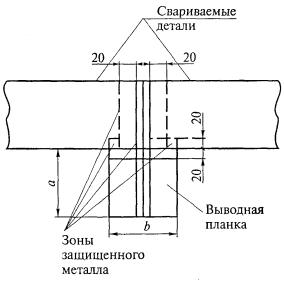 3.2.11. Неуказанные допуски формы и расположения поверхностей в готовой сборочной единице должны соответствовать квалитету 16 ГОСТ 25069. 3.2.12. Предельные отклонения линейных размеров готовых сборочных единиц должны соответствовать 16 квалитету и классу точности «грубый» ГОСТ 25670. 3.2.13. При сборке деталей под сварку допускаются следующие отклонения от проектного взаимного расположения собираемых деталей. В стыковых соединениях: смещение свариваемых кромок относительно друг друга при толщине стыкуемых деталей не более 4 мм - 0,5 мм; при толщине 4 - 10 мм - 1 мм; при толщине свыше 10 мм - 0,1 толщины стыкуемых деталей, но не более 3 мм (рис. 5); Рис. 5 уступ кромок в плоскости соединения для полок и других свободных по ширине деталей - не более 3 мм для деталей шириной до 400 мм и не более 4 мм для деталей шириной более 400 мм (рис. 6); уступ кромок в соединениях замкнутого контура - не более 2 мм по всему периметру (рис. 7). В тавровых соединениях: отклонение полки от заданного проектом положения - не более 1:100 (рис. 8). 3.2.14. Прихватка элементов сварных соединений при сборке должна выполняться сварщиком той же квалификации, что и при сварке, и с использованием тех же сварочных материалов. Если прихватка и сварка соединений выполняются различными видами сварки (например, прихватка вручную, а сварка автоматами или полуавтоматами), то сварочные материалы могут отличаться. Рис. 6 Рис. 7 Рис. 8 Прихватка расчетных элементов сварочных несущих металлоконструкций должна выполняться сварщиками, аттестованными в соответствии с Правилами аттестации сварщиков Госгортехнадзора и имеющими удостоверение. 3.2.15. Прихватки необходимо размещать в местах расположения сварных швов. Количество и размеры прихваток, а также последовательность их наложения определяются технологическим процессом изготовления. При наложении швов проектного сечения прихватки должны переплавляться. Разрешается наложение прихваток вне мест расположения швов для временного скрепления деталей, если они не создают дополнительных концентратов напряжения в соответствующих элементах металлоконструкций. В дальнейшем эти прихватки должны быть удалены, а места их размещения зачищены. 3.2.16. По окончании сборочных работ швы прихваток и места под сварку должны быть зачищены от шлака, окалины, брызг. Прихватки, имеющие дефекты, должны быть удалены и выполнены вновь. 3.2.17. При сборке под сварку в начале и конце стыковых швов должны, как правило, устанавливаться выводные планки. Необходимость установки выводных планок и их размеры, которые должны быть не менее a = 60 мм, b = 80 мм (рис. 9), определяются технологическим процессом изготовления. Выводные планки должны иметь такую же разделку, как и свариваемые детали. Рис. 9 Выводные планки должны быть установлены в одной плоскости со свариваемыми деталями и плотно прилегать к их зачищенным кромкам. Допуски на точность установки выводных планок такие же, как и при сборке деталей под сварку. 3.2.18. Для защиты металла от сварочных брызг рекомендуется использовать жидкий концентрат лигносульфоната марки ЛСТ по ТУ 13-0281036-05-89 или другие защитные средства с аналогичными свойствами, не влияющие на качество сварки. Лигносульфонат технический разбавляется в горячей воде температурой 50 - 60 °С в отношении 1:4 по массе или 1:5 по объему. Полученная жидкость наносится на поверхность свари