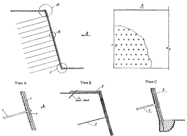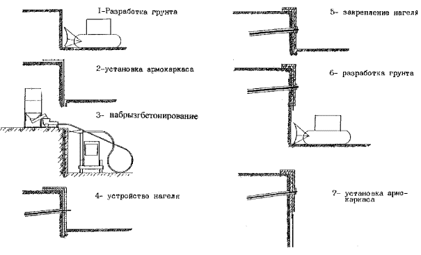 6.28. В состав работ по устройству нагельного крепления со сборной защитной стенкой входят следующие технологические операции (рис. 6.9):