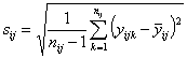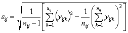 7.4.5 Расчет дисперсий Для каждого уровня рассчитывают три дисперсии: повторяемости, межлабораторную и воспроизводимости. 7.4.5.1 Дисперсия повторяемости равна