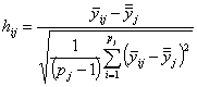Таким образом, если во всех базовых элементах содержится по два результата измерений, для простоты вместо стандартных отклонений могут быть использованы абсолютные расхождения. Стандартное отклонение должно выражаться значением, на одну значащую цифру большим, чем в результатах по форме А. Для значений nij, меньших 2, в форме С должен быть проставлен прочерк. 7.2.11 Исправленные или исключенные данные Поскольку некоторые из данных могут быть исправлены или исключены на основании тестов, описанных в 7.1.3, 7.3.3 и 7.3.4, значения yijk, nij и pj - используемые для окончательного определения прецизионности и общего среднего, могут отличаться от значений, соответствующих исходным результатам измерений, зафиксированным в формах А, В и С (рисунок 2). Следовательно, при представлении в отчете (докладе) окончательных значений прецизионности и правильности необходимо всегда точно определять, какие данные, если таковые имеются, были исправлены или исключены. 7.3 Анализ данных на совместимость и наличие выбросовСм. стандарт ASTM Е 691-87 [2]. Исходя из данных, собранных на различных уровнях, нужно оценить стандартные отклонения повторяемости и воспроизводимости. Наличие отдельных лабораторий или значений, которые представляются несовместимыми со всеми остальными лабораториями или значениями, может изменить оценки, так что решения об исключении данных нужно принимать только после тщательного анализа. Вводят два подхода к принятию таких решений: a) графический анализ совместимости; b) статистическое тестирование выбросов. 7.3.1 Графический анализ совместимости Используют две меры, носящие названия статистик Манделя h и k. Можно отметить, что помимо отображения вариабельности (непостоянства результатов) метода измерений, они помогают оценить лаборатории. 7.3.1.1 Сначала для каждой лаборатории рассчитывают статистики межлабораторной совместимости h посредством деления средних различий в базовых элементах (среднее значение для базового элемента минус общее среднее значение для данного уровня) на стандартные отклонения средних значений в базовых элементах (для данного уровня) где Затем значения hij для каждого базового элемента наносят на диаграмму в последовательности увеличения индекса i, так чтобы каждому номеру лаборатории соответствовала группа значений hij, относящихся к разным уровням (см. рисунок В.7). 7.3.1.2 Далее рассчитывают статистики внутрилабораторной совместимости k путем вычисления внутриэлементного стандартного отклонения