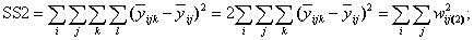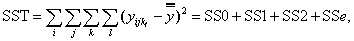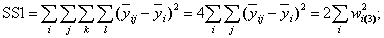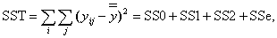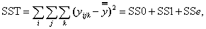 где p - количество лабораторий, участвовавших в межлабораторном эксперименте. Полную сумму квадратов SST можно подразделить следующим образом: