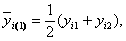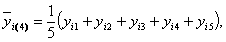 С.3 Пятифакторный ступенчато вложенный экспериментДанные, полученные в результате эксперимента в пределах лаборатории i, обозначают yij (j = 1, 2, 3, 4, 5), а средние значения и диапазоны изменений имеют следующий вид: