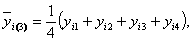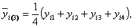 Из средних квадратов MS0, MS1 и MSe могут быть получены несмещенные оценки s2(0), s2(1), и s2(r) соответствующих величин σ2(0), σ2(1), и σ2(r), а именно: s2(0) = 1/3MS0 - 5/12MS1 + 1/12MSe, s2(1) = 3/4MS1 - 3/4MSe, s2r = MSe. Оценки дисперсий повторяемости, промежуточной прецизионности с одним изменяющимся фактором и воспроизводимости соответственно равны: s2r, s2I(1) = s2r + s2(1), S2R = S2r + S2(1) + S2(0). С.2 Четырехфакторный ступенчато вложенный экспериментДанные, полученные в результате эксперимента в пределах лаборатории i, обозначают yij (j = 1, 2, 3, 4), а средние значения и диапазоны изменений имеют следующий вид: