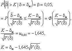 Найдем критическое значение K на основе соотношений: где Ф() - интегральная функция распределения стандартного нормального распределения; up - p-квантиль стандартного нормального распределения;