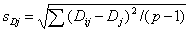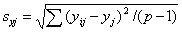 k) Стандартные отклонения повторяемости srj, между пробами sHj, между лабораториями sLj и воспроизводимости sR, определяемые по формулам: