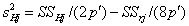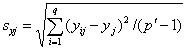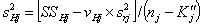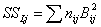 измерения минус среднее пробы. e) Сумма квадратов для проб (суммирование по i)