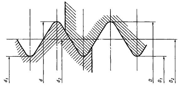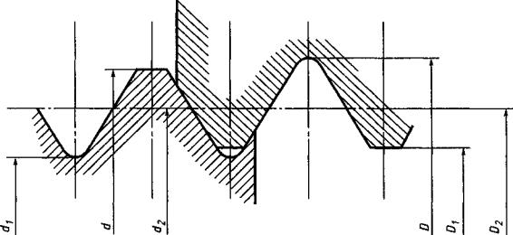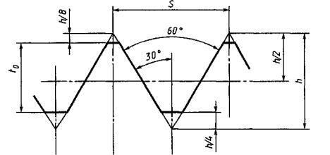 После установления рН объем раствора доводят до 1 дм3 дистиллированной или деминерализованной водой. Это не должно заметно повысить значение рН. В процессе регулировки рН температуру поддерживают по возможности постоянной с допуском ±1 °С, проводят измерение рН, используя прибор, обеспечивающий регулировку значения рН с допуском ±0,02. Испытательный раствор может использоваться продолжительное время, но значение рН, определяемое измерением концентрации аммония в парах атмосферы, должно проверяться не реже чем раз в три недели и, если необходимо, регулироваться. А.3 Методика испытания Предварительно подвешенные образцы вводят в испытательную камеру в положении, обеспечивающем эффективную циркуляцию паров аммония. Образцы не должны погружаться в испытательный раствор или касаться его. Устройства подвески или крепления изготавливают из материалов, устойчивых к воздействию паров аммония, например из стекла или фарфора. Испытание проводят при постоянной температуре (30 ± 1) °С, не допуская заметной конденсации воды, образующейся в результате изменений температуры, которая может значительно исказить результаты испытания. До испытания температура в камере, содержащей испытательный раствор, должна быть доведена до (30 ± 1) °С. Камеру максимально быстро заполняют образцами, предварительно нагретыми до 30 °С, и закрывают. Этот момент считают началом испытания. ОСНОВНОЙ И ПРЕДЕЛЬНЫЙ ПРОФИЛИ ДЛЯ ГАЙКИ И ВИНТА Метрическая резьба ИСО Основной профиль* h = 0,86603S, h/4 = 0,21651S, h/8 = 0,10825S, t0 = 5/8h = 0,54127S * За основной принимают профиль, имеющий предельные отклонения наружной резьбы. Предельный профиль гайки