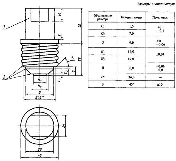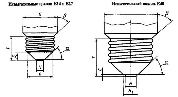 В корпусе патронов Е40 размеры S и Е предназначены только для предельных калибров. Рисунок 11 - Испытательный цоколь для испытаний по 14.4 и 19.3 Размеры в миллиметра