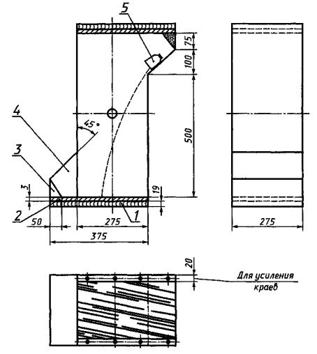 1 - деревянная плита; 2 - стальной лист; 3 - резина; 4 - гладкий пластмассовый лист; 5 - образец Корпус барабана должен быть изготовлен из стального листа толщиной 1,5 мм. Отсек, в котором образец находится до испытания, должен быть изготовлен из ударопрочной резины твердостью 80 IRHD, а детали, по которым патрон скользит, - из пластмассы, например марки «Formica». Конструкция барабана должна иметь проем с крышкой из прозрачного ударопрочного материала. Ось вращения не должна проходить внутри корпуса барабана. Рисунок 7 - Вращающийся барабан