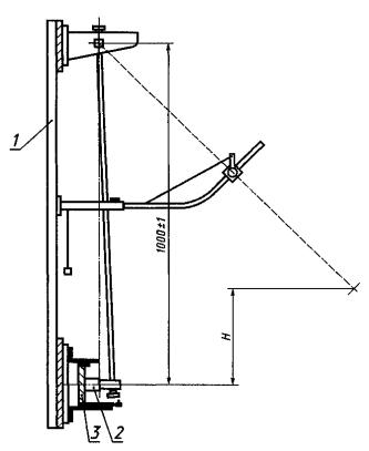 1 - рама; 2 - образец; 3 - монтажная плата для крепления патрона; Н - высота падения Примечание - Подробная информация приведена в базовом стандарте. В случае двойного толкования следует обращаться к МЭК 60068-2-75. Рисунок 8 - Установка для испытания на удар