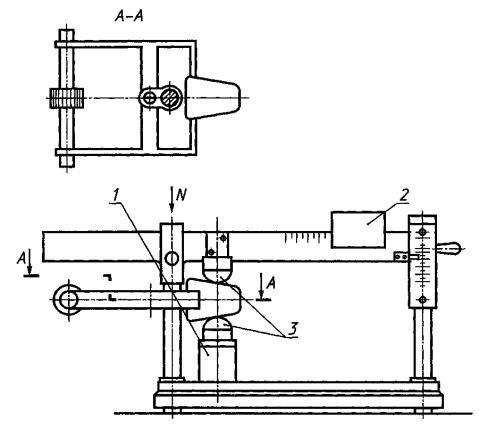 Рисунок 12 - Установка для испытания на изгиб 1 - твердая латунь; 2 - острые кромки притупить; 3 - твердая сталь * Размеры резьбы испытательного цоколя А должны быть между максимальными и минимальными значениями, указанными в стандартном листе 7004-23 МЭК 60061-1, а размеры резьбы испытательного цоколя В должны иметь минимальные значения с допуском ± 0,05 мм, указанные в стандартном листе 7004-23 МЭК 60061-1. Размеры в миллиметрах