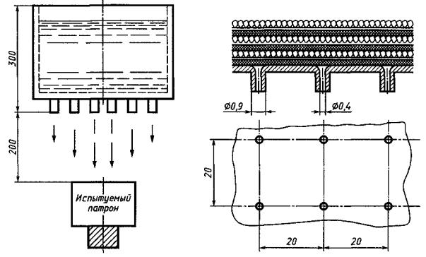 где Р - глубина отпечатка. 20.2 Наружные детали из изоляционного материала (корпус, в том числе с наружной резьбой, донышко или фланец), обеспечивающие защиту от поражения электрическим током, и детали из изоляционного материала, на которых располагаются токоведущие детали (комплект зажим/контакт), должны быть огнестойкими. Проверку всех материалов, кроме керамических, проводят испытаниями по 20.3 или 20.4. Требование не распространяется на патроны Е5 и Е10 с нормируемым напряжением не более 60 В. Резьбовые гильзы, находящиеся под напряжением только при ввинченной лампе, не считают токоведущими. Изоляционный материал, служащий опорой для таких гильз, проверяют по 20.3. Образцом является патрон в сборе. Для проведения испытания может возникнуть необходимость извлечь некоторые детали из патрона. Однако условия испытания не должны существенно отличаться от условий при нормальной эксплуатации. Образец крепят на каретке и прижимают к концу раскаленной проволоки с усилием 1 Н на расстоянии 15 мм или более от наружного края в направлении центра испытуемой поверхности. Проникание раскаленной проволоки в образец на глубину более 7 мм должно быть механически ограничено. Если образец слишком мал, то испытание проводят на отдельном образце из того же материала в форме квадрата 30×30 мм и толщиной, равной минимальной толщине испытуемой детали. Температура контактной части раскаленной проволоки равна 650° С. Через 30 с образец отводят от раскаленной проволоки. Температура раскаленной проволоки и ток, проходящий через нее, должны быть стабильными за 1 мин до начала испытания. Необходимо, чтобы термоизлучение проволоки в это время не влияло на образец. Температуру контактной части раскаленной проволоки измеряют термоэлектрическим преобразователем, защищенным огнестойкой оболочкой, изготовленной и откалиброванной в соответствии с МЭК 60695-2-1. Горение или тление образца должно прекратиться через 30 с после удаления раскаленной проволоки, а горящие частицы не должны воспламенять папиросную бумагу, указанную в пункте 6.8.6 ИСО 4046, расположенную горизонтально на расстоянии (200 ± 5) мм под образцом. Образцом является патрон в сборе. Для проведения испытания может возникнуть необходимость извлечения некоторых деталей из патрона (например, контакты, находящиеся на обратной стороне гильзы). Однако условия испытания не должны существенно отличаться от условий при нормальной эксплуатации. Испытательное пламя направляют на центр испытуемой поверхности. Длительность воздействия пламени - 10 с. Горение должно прекратиться через 30 с после удаления испытательного пламени, а горящие частицы, выделяемые образцом, не должны воспламенять папиросную бумагу, расположенную горизонтально на расстоянии (200 ± 5) мм под образцом. Примечание - Дополнительную информацию см. в пояснении к рисунку 19. Проверку материалов, кроме керамических, проводят испытанием на устойчивость к токам поверхностного разряда в соответствии с МЭК 60112 со следующими уточнениями. Если образец не имеет плоской поверхности не менее 15×15 мм, то испытание проводят на плоской поверхности с уменьшенными размерами, обеспечивающими удержание капель раствора на образце в процессе испытания. Однако не должен использоваться искусственный способ удержания раствора на поверхности. При сомнении испытание м