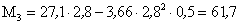 4) Изгибающий момент на расстоянии 2,8 м от опоры - в месте повреждения полки: