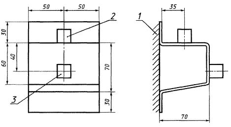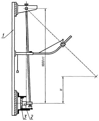 1 - опорная поверхность; 2 - образец для наружного и полускрытого монтажа; 3 - образец для скрытого монтажа Примечание - Более подробную информацию см. в МЭК 60068-2-62. Рисунок 8 - Скоба для крепления патрона на маятниковой ударной установке Н - высота в соответствии с инструкциями изготовителя; 1 - стальной испытательный цоколь; 2 - источник тепла (доступное пространство); 3 - защитная трубка (при необходимости); 4 - выступ для защитной трубки; 5 - патрон; 6 - термопары; 7 - груз массой 100 г В миллиметрах