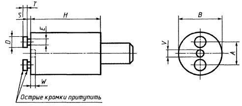 Рисунок предназначен только для иллюстрации основных размеров калибров. Назначение: проверка патрона для стартеров вставлением «максимального» стартера. Калибр А применяют также для испытания на скручивание. Испытание, каждый из калибров А и В поочередно плавно вводят в патрон для стартера до достижения ими нормального рабочего положения стартера. Рисунок 11 - Проходной калибр для патронов для стартеров