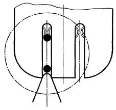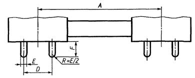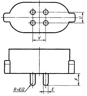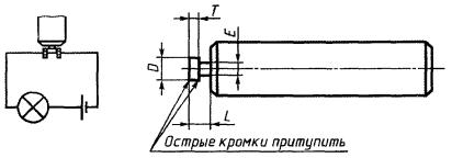 Электрическая схема испытания Рисунок предназначен для иллюстрации основных размеров калибра. Назначение: проверка наличия контакта в патронах для стартеров, в которых контактное нажатие практически не зависит от расстояния между штырьками стартера. Испытание: при введении калибра поочередно в каждый контакт сигнальная лампа должна гореть без мигания во всех возможных положениях калибра. Испытание следует проводить после проверки калибрами, указанными на рисунке 11. Рисунок 13 - Специальный калибр для проверки наличия контакта в патронах для стартеров В миллиметрах