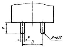 Назначение: проверка удержания и наличия контакта «минимального» стартера в патроне для стартеров, в котором контактное нажатие определяется расстоянием между штырьками стартера. Для патронов, в которых контактное нажатие практически не зависит от расстояния между штырьками стартера, применяют калибр по рисунку 13. Испытание: патрон для стартеров считают удовлетворяющим требованиям, если контрольная лампа зажглась после установки калибра в нормальное рабочее положение стартера. В этом положении калибр должен удерживаться патроном для стартеров. Испытание следует проводить после проверки калибрами, указанными на рисунке 11. Примечание - Масса калибра должна быть ~ 75 г. Рисунок 12 - Калибр для проверки патронов для стартеров на наличие контакта и удержания В миллиметрах