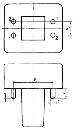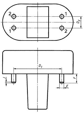 Штырьки 1 должны сниматься при испытании патронов G24d-1 - G24d-3, штырьки 2 - при испытании патронов GY24d-1 - GY24d-3. Рисунок 28 - Испытательный цоколь для испытания патронов G24 и GY24 по разделу 13 В миллиметрах