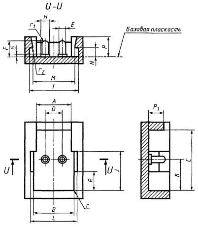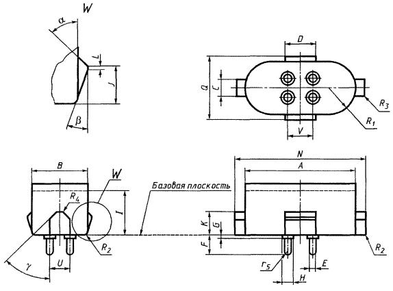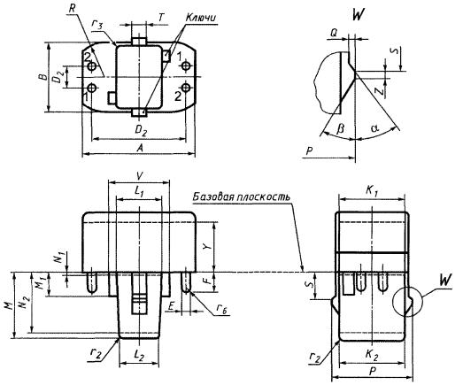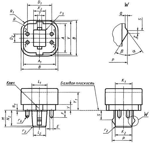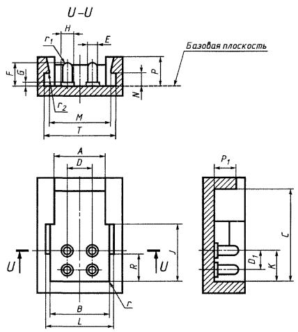* Измеряют на расстоянии N1 от базовой плоскости. ** Измеряют на расстоянии N2 от базовой плоскости. 1) Штырьки 1 должны быть удалены при испытании патронов GY24d-l - GY24d-3. 2) Штырьки 2 должны быть удалены при испытании патронов G24d-l - G24d-3, GX24d-l - GX24d-3. 3) В испытательных цоколях для испытания патронов GX24d и GX24q эти значения увеличены до 61 мм в диаметре. 4) В испытательных цоколях для испытания патронов G24q и GX24q эти значения уменьшены до 16 мм. 5) В испытательных цоколях для испытания патронов G24q и GX24q эти значения уменьшены до 14 мм. 6) В испытательных цоколях для испытания патронов G24q и GX24q эти значения увеличены до 15,95 мм. 7) В испытательных цоколях для испытания патронов G24q и GX24q эти значения увеличены до 13,55 мм. Рисунок 37 - Испытательный цоколь для испытания патронов G24, GX24 и GY24 по 17.1 Представлен только испытательный цоколь для испытания патронов G32q4