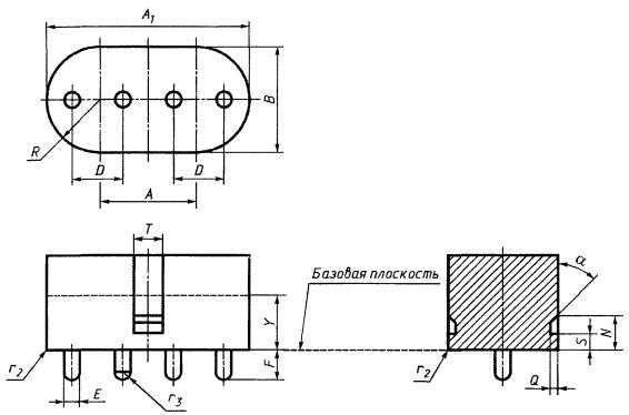 1) Эта часть калибра и штырьки цоколя должны быть изготовлены из закаленной стали. 2) Отличаются от указанных в разделе 14 материалом, из которого они изготовлены, и значениями размеров А, Н и r. Рисунок 4 - Испытательные цоколи G5 и G13