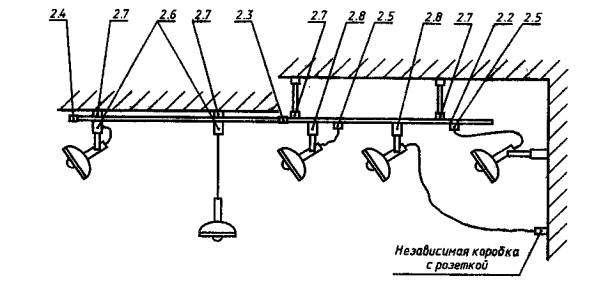 Дата введения 2000-07-01 1 Область примененияНастоящий стандарт распространяется на шинопроводы с двумя и более полюсами для присоединения светильников к источнику электрического питания либо на номинальное напряжение не выше 440 В между полюсами и номинальный ток не более 16 А, имеющие заземление (класс I), или на нормированное сверхнизкое безопасное напряжение не выше 25 В без заземления (класс III) и номинальный ток не более 25 А. Шинопроводы могут также обеспечивать механическое крепление светильников. Стандарт распространяется на шинопроводы, предназначенные для помещений с нормальными условиями эксплуатации для установки или встраивания, или подвешивания на стены и потолки. Такие шинопроводы не предназначены для установки в местах, где преобладают специальные условия - на судах, транспортных средствах и т.д., а также в опасных зонах, например взрывоопасных. Настоящий стандарт следует применять вместе с соответствующими разделами МЭК 60598-1, на которые даны ссылки. 1.1 Нормативные ссылкиВ настоящем стандарте используют следующие ссылки. На момент издания настоящего стандарта указаны действующие редакции. Все нормативные документы подвергаются пересмотру и частичным изменениям, поэтому, по возможности, следует применять более поздние издания. Члены МЭК и ИСО ведут регистрацию действующих международных стандартов. МЭК 60598-1 (1999) Светильники. Часть 1. Общие требования и методы испытаний МЭК 60364-7-715 (1999) Электрические установки зданий. Часть 7-715. Требования для специальных установок или помещений. Сверхнизкие осветительные установки. (Измененная редакция. Изм. № 1). 2 ОпределенияВ настоящем стандарте используют определения из раздела 1 МЭК 60598-1 совместно со следующими определениями. Примечание - Термин «светильник» (см. МЭК 60598-1), используемый в дальнейшем, также включает элементы шинопроводов для светильников. _________ * Соответствие стандарта МЭК государственному стандарту указано в приложении А. 2.1 шинопровод для светильников: Система, состоящая из секций с проводниками для присоединения светильников к электрической сети в различных местах, положения которых определяются только длиной и расположением секций шинопровода, и включающая в себя некоторые или все элементы, определения которых приведены в 2.2 - 2.8 (см. также рисунок 1). 2.2 секция шинопровода: Как правило, линейная конструкция, состоящая из проводников, заключенных в корпус, и предназначенная для механического и электрического присоединения светильников. Примечание - Светильники могут устанавливаться или перемещаться вдоль шинопровода простым способом (т.е. без применения инструмента). 2.3 соединитель: Элемент, обеспечивающий электрическое или механическое соединение секций шинопровода. 2.4 вводное устройство: Элемент, используемый для электрического присоединения шинопровода к источнику питания. Примечание - Функции вводного устройства и соединителя могут быть совмещены. 2.5 штепсель: Элемент, используемый для электрического присоединения светильника к секции шинопровода. Штепсель не предназначен для механического закрепления светильника на секции шинопровода. 2.6 адаптер: Элемент, используемый для электрического присоединения и механического крепления светильника к секции шинопровода. Примечание - Адаптер может содержать выключатся или плавкий предохранитель. 2