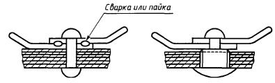 5.2.13 Концы гибких многопроволочных жил могут быть облужены, но без избытка припоя, если только не предусмотрено устройство защиты от ослабления первоначально затянутых зажимных соединений на холоде из-за текучести припоя (см. рисунок 28).