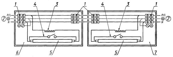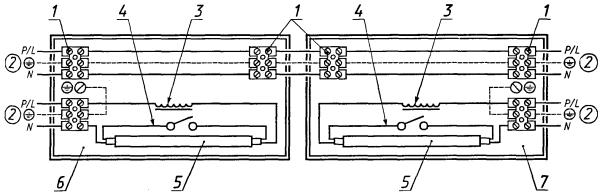5.2.12 Стационарные светильники для шлейфового присоединения должны иметь контактные зажимы, обеспечивающие электрическую непрерывность сетевого кабеля в светильнике, в котором кабель не должен заканчиваться.