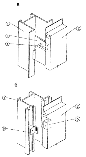 Рис. 1.2. Здание УМНС России по Московской обл., Походный проезд, г. Москва Рис. 1.3. Здание бизнес-центра, Ушаковская наб., г. Санкт-Петербург 3. Конструктивное решение систем3.1. Системы являются многослойными конструкциями, включающими несущий каркас, прикрепленный к основанию (несущие конструкции наружной стены), слой утеплителя, также прикрепленный к основанию, и фасадный облицовочный слой в виде кассетных панелей из композитных листов типа «Alucobond», а также керамических или керамогранитных плит, прикрепленных к элементам (в основном к вертикальным профилям) несущего каркаса. При этом между облицовочным слоем и слоем утеплителя устраивается вентилируемый воздушный зазор, с помощью которого влага, накапливающаяся в утеплителе, эффективно удаляется. Возможен вариант применения этих систем без утеплителя только в качестве фасадной отделки зданий. 3.2. Системы «U-KON» в соответствии с техническими свидетельствами отличаются видом облицовочного материала и способами его крепления к несущему каркасу. 3.2.1. В системах АТС-КА-СХ-ВХ в качестве облицовочного материала применяются кассетные панели из композитного листового материала «Alucobond» А2, В1 и В2 (рис. 3.1 и 3.2). В этой системе есть 3 подсистемы (АТС-101, АТС-102и и АТС-103), отличающиеся конструкцией крепежных элементов для крепления кассетных панелей к вертикальным профилям. 3.2.2. В системах АТС-ПК-ВХ-ВХ в качестве облицовочного материала применяются керамические и керамогранитные плиты, которые кляммерами или клипсами крепятся к вертикальным профилям (рис. 3.3 и 3.4). В системе имеется 5 подсистем (204А, 214А, 234А, 214 и 234), которые отличаются видом применяемого вертикального профиля и крепежными элементами (кляммерами или клипсами). 3.2.3. В системах АТС-ПК-СХ-ВХ (rz) для облицовки фасада тоже применяются керамические и керамогранитные плиты, которые крепятся на вертикальных профилях невидимыми снаружи крепежными устройствами (рис. 3.5 и 3.6). В этой системе, в зависимости от вида крепежных устройств, имеется 5 подсистем (228, 228А, 235, 236 и 201). 3.3. Несущие каркасы всех систем «U-KON» включают кронштейны, удлинители кронштейнов, вертикальные профили, салазки, крепежные детали и другие изделия. Перечень применяемых деталей и изделий приводится в разделе 2 приложения к техническому свидетельству Госстроя РФ на каждую систему. 3.3.1. Кронштейны - это элементы, которые с помощью дюбелей и анкерных болтов соединяют несущий каркас с основанием. Для сокращения теплопотерь кронштейны примыкают к основанию через паронитовую прокладку. Кронштейны без удлинителей позволяют сделать систему со слоем утеплителя до 120 мм, если по теплотехническому расчету требуется утеплитель большей толщины, следует применять кронштейны с удлинителями, которые соединяются между собой вытяжными заклепками. Кронштейны с удлинителями и без них соединяются с вертикальными профилями с помощью салазок, которые одеваются на вертикальный профиль до его соединения с кронштейнами. При этом, направляющие на вертикальном профиле входят в пазы салазок. Это соединение позволяет вертикальному профилю перемещаться в вертикальном направлении относительно салазок и быть жестко фиксированным от перемещений в горизонтальном направлении. Соединение салазок с кронштейнами (или с удлинителями) производят вытяжными заклепками через шайбы с рифлением. Гориз