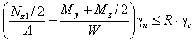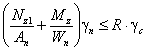 f / l - 0,75 / 1350 = 1 / 1800, что меньше предельно допустимой величины [f / l] = 1 / 200, жесткость профиля достаточна. 6.4.3. Расчет несущего кронштейна Геометрические характеристики Параметры поперечного сечения за вычетом четырех отверстий под заклепки Ø 5,1 мм: h = 100 мм; hn = 90 мм; δ = 2 мм; Аn = 360 мм2; Wn = 6014 мм3; Jn = 300693 мм4; Sn = 4184 мм3; t = 2 · δ = 4 мм. Усилия От вертикальной нагрузки Nz1 = 495 Н; от вертикальной и горизонтальной нагрузок: для элементов Nу1 = ру1 (lz / 2 + аz) + (1,5 Мz - Mу) / lz = 728 (1,35 / 2 + 0,15) + (1,5 · 42 - 166) / 1,35 = 677 Н, где Мz и Мy - те же, что и в вертикальном профиле, см. п. 6.4.2. Продольное растягивающее усилие Ny = Ny1 = 677 Н, поперечная сила Qz = Nz1 = 495 Н. Проверка прочности поперечного сечения на растяжение с изгибом и сдвиг (срез) По формуле (29) [3] на растяжение с изгибом