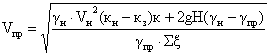 Rоп.вн.сл - сопротивление паропроницанию от внутренней поверхности до границы зоны возможной конденсации (с учетом пограничного слоя); ΣRп.сл - сумма сопротивлений паропроницанию слоев до рассматриваемого сечения; Rоп - сопротивления паропроницанию всей стены. По указанным формулам определяется упругость водяного пара еi в характерных сечениях конструкции в годовом цикле. Если еτ окажется больше максимальной упругости водяного пара Е, то в данном сечении может образовываться конденсат. 7.6.4. Определение параметров воздухообмена в прослойке Движение воздуха в прослойке осуществляется за счет гравитационного (теплового) и ветрового напора. В случае расположения приточных и вытяжных отверстий на разных стенах скорость движения воздуха в прослойках Vпр может определяться по следующим формулам: где кн, кз - аэродинамические коэффициенты на разных стенах здания по СНиП 2.01.07-85 [2]; Vн - скорость движения наружного воздуха; к - коэффициент учета изменения скорости потока по высоте по СНиП 2.01.07-85; Н - разности высот от входа воздуха в прослойку до ее выхода из нее; tср, tн - средняя температура воздуха в прослойке и температура наружного воздуха; Σξ - сумма коэффициентов местных сопротивлений (определяется сложением аэродинамических сопротивлений). Другим вариантом определения Vпр служит формула: γн, γпр - плотности наружного воздуха и в прослойке. Другой вариант определения Vпр по разности давлений воздуха на входе и выходе: ΔРΔ = ΔРвх - ΔРвых, ΔPвх и ΔPвых = H (γн - γпр) + 0,5 γн · Vн2 (кн - кз) к, (8) Vпр по формуле