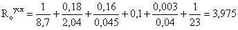 где r = 0,83 в соответствии с табл. 3 (при проемности 18 %). Сопротивление теплопередаче по глади наружной бетонной стены условное: