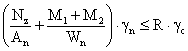 прочность на смятие в вырезах обеспечивается. 6.4.5. Расчет крепления кронштейна к стене Крепление производится одним стальным болтом Æ 12 мм с расчетным диаметром 9,7 мм и расчетной площадью сечения Аn = 73,9 мм2; Wn = pr3/4 = 0,785·4,853 = 89,6 мм3. Расчетные сопротивления - по п. 6.2. Изгибающий момент в болте М = Nz·ey = 198·0,03 = 5,9 Нм; поперечная сила Qz = Nz,1 = 198 Н; продольная сила Nу = Ny,2 = 525 Н. По формуле (50)