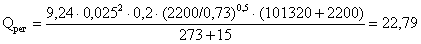 где d - внутренний диаметр продувочной свечи, м; τ - время регулировки и настройки, ч; ρ - плотность газа, кг/м3. Пример расчета - Требуется определить фактический расход газа на регулировку и настройку шкафного ГРП. Исходные данные: (d = 0,025 м; τ = 0,2 ч; Ра = 101320 Па; Рг = 2200 Па; tг = 15 °С; ρ = 0,73 кг/м3).