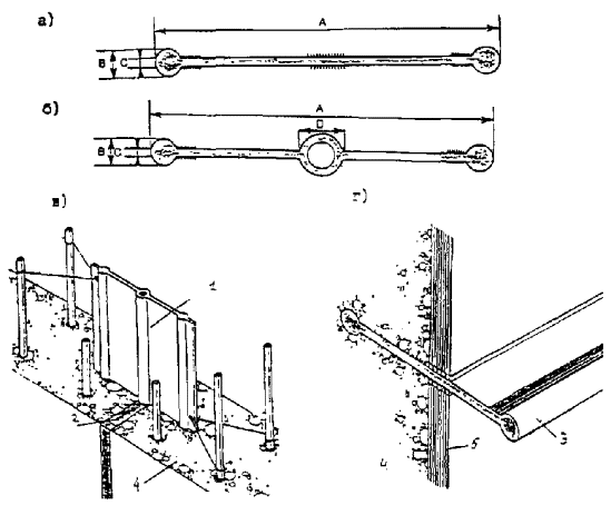 Конструкция гидроизоляции и пристенного дренажа приведена на рис. 3.4. Крепление дренажного материала к стене производят либо специальными крепежными профилями-плинтусами «Delta® - MS Profil», либо строительными гвоздями с шайбами «Delta® - MS Washer», забиваемыми с помощью монтажного пистолета, либо шурупами, вкручиваемыми в пластиковые дюбели (длина 70 мм, внешний диаметр 9 мм, внутренний - 8 мм) «Delta® - MS Anchor», вставленные в просверленные отверстия. 3.1.13. Деформационные швы целесообразно организовывать с применением резиновых трехкулачковых лент. Удержание ленты в вертикальном положении в зазоре следует обеспечивать закреплением ее за арматурные каркасы, либо за опалубку (рис. 3.5). 1 - тело стены; 2 - гидроизоляция; 3 - полотно пристенного дренажа. Рис. 3.4. Конструкция гидроизоляции и пристенного дренажа а) рабочих швов; 6) температурных (деформационных) швов; в) установка ленты в деформационном шве; г) установка ленты в рабочем шве. 1 - лента деформационного шва; 2 - заполнение стыка; 3 - лента рабочего стыка; 4 - монолитная бетонная стена; 5 - опалубка Рис. 3.5. Резиновые ленты для уплотнения стыков ЗАСЫПАЕМАЯ СТОРОНА СТЕНЫ НАРУЖНАЯ СТОРОНА СТЕНЫ 1 - тело подпорной стены; 2 - пористый лист; 3 - пористая трубки; 4 - мастика или герметик; 5 - гидроизоляция стены; 6 - лента герлен; 7 - дополнительная гидроизоляция. Рис. 3.6. Схема перекрытия деформационного шва Температурный зазор между секциями стены может быть заполнен пороизолом, вилатермом, другим пористым жгутом (по спецификации производителя). Наружные зоны зазора внутри и снаружи стены должны быть заполнены мастикой (рис. 3.6). 3.1.14. На прямоугольных звеньях водопропускных труб гидроизоляцию выполняют аналогично применяемой на плите проезжей части пролетных строений (см. рис. 3.2, 3.3) в соответствии с рис. 3.1 без устройства защитного слоя на горизонтальной и вертикальной поверхностях. Стыки между звеньями труб заполняют по аналогии с деформационным швом на рис. 3.6. На звеньях круглых труб гидроизоляцию выполняют обмазкой мастикой «Ижора» в один слой толщиной 1 мм в соответствии с рис. 3.8. Стыки звеньев перекрывают оклеечной гидроизоляцией из рулонного материала. При необходимости грунтования изолируемой поверхности используют грунтовку производства АО «Растро», нанося ее кистью или распылителем с расходом 100-200 г/м2. 3.1.16. Брикеты мастики «Ижора» освобождают от упаковки, гильотинными ножницами разделяют на более мелкие куски и разогревают в битумоплавильной установке, предпочтительно имеющей вал с перемешивающими лопастями и масляную рубашку.