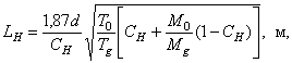 где d - диаметр свечи; СН - НКПРП; Т0, М0 - температура и молекулярный вес среды, в которую происходит истечение; Тg, Mg - температура и молекулярный вес истекающего газа. Объем взрывоопасной смеси
