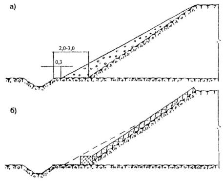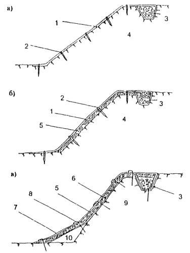 III группа - защитные и изолирующие конструкции, назначение которых - изолировать поверхностные слои откоса от температурных воздействий, впитывания атмосферных осадков и отводить грунтовые воды.
