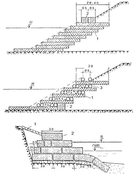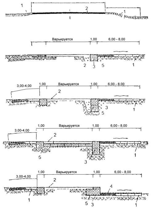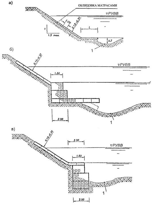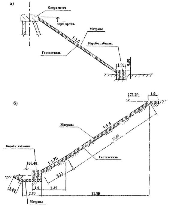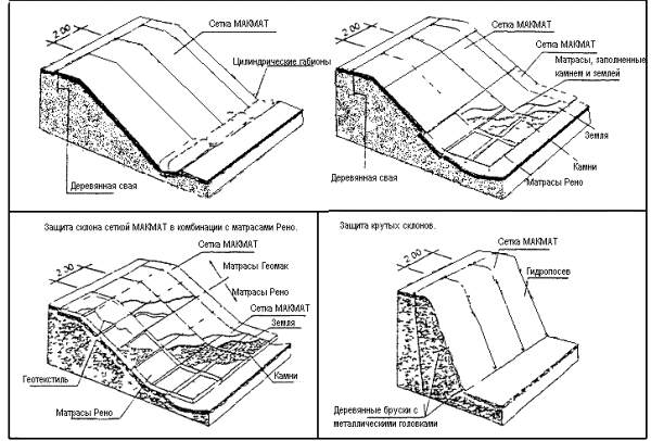 Все эти укрепления типизированы по конструктивным решениям и условиям применения, большинство из них имеют научно-методическое сопровождение в виде ведомственных строительных норм, методических указаний и рекомендаций.