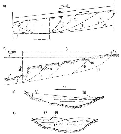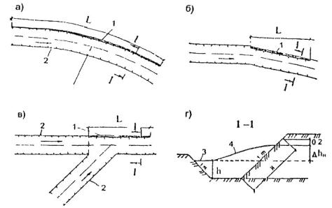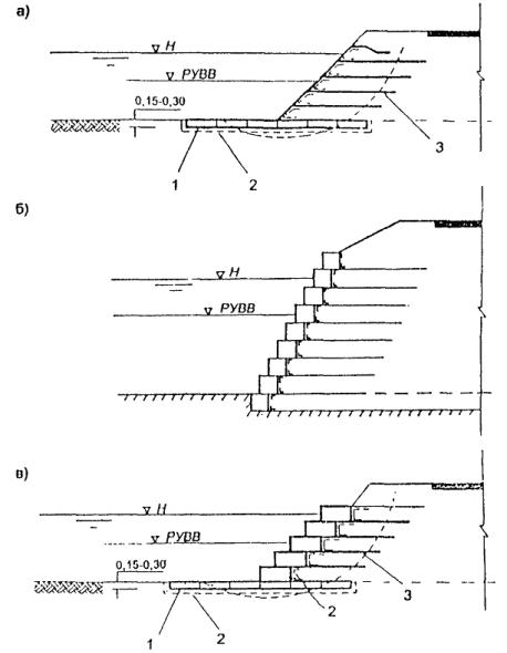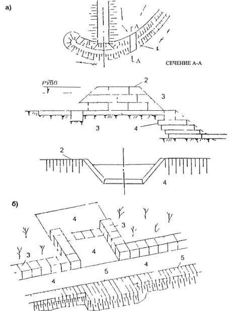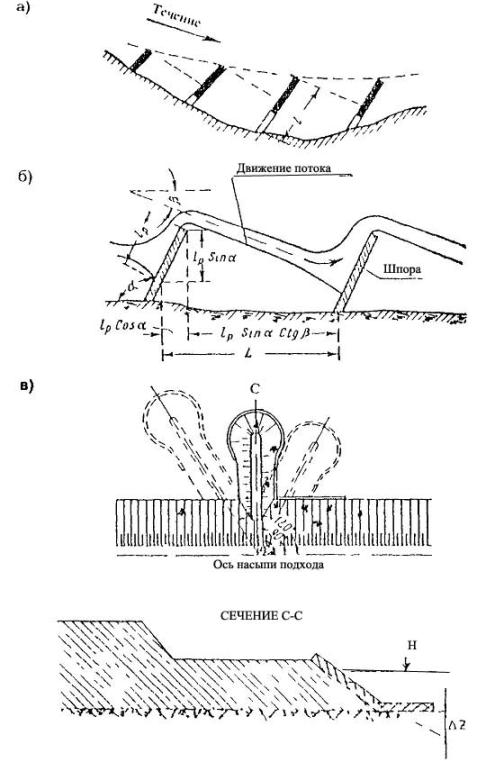 - руслорегулирующих сооружений и регуляционных сооружений в бассейнах рек с неустойчивым характером русловых процессов;