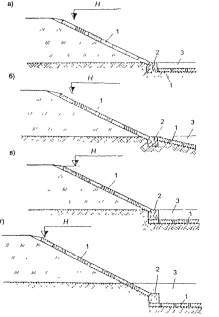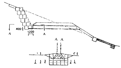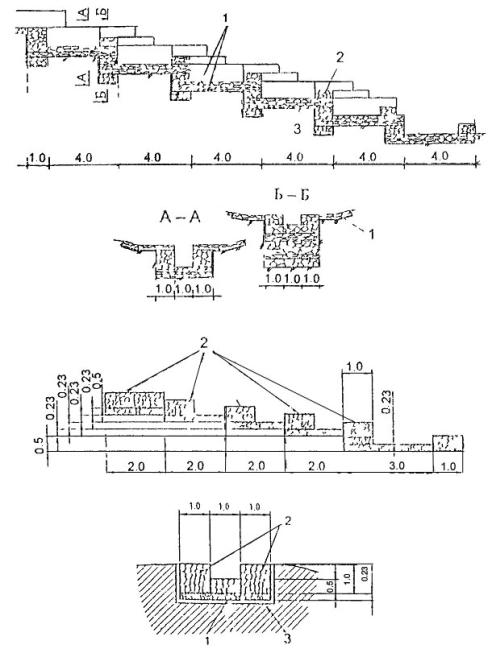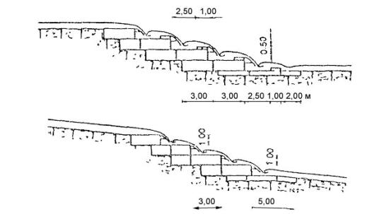 II группа - несущие конструкции, предназначенные для компенсации сдвигающих усилий, возникающих в грунте поверхностных слоев откосов, а также силовых и других воздействий паводковых и поверхностных вод;