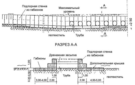 Многолетний опыт Союздорпроекта и других организаций показывает, что габионные конструкции всегда были и остаются альтернативным вариантом укрепления не только подтапливаемых, но и неподтапливаемых дорожно-мостовых откосов.